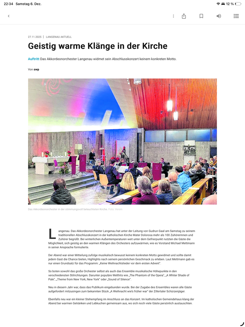 Aktuelles aus der Presse: Bericht zum Kirchenkonzert 2025 am 22.11.2025